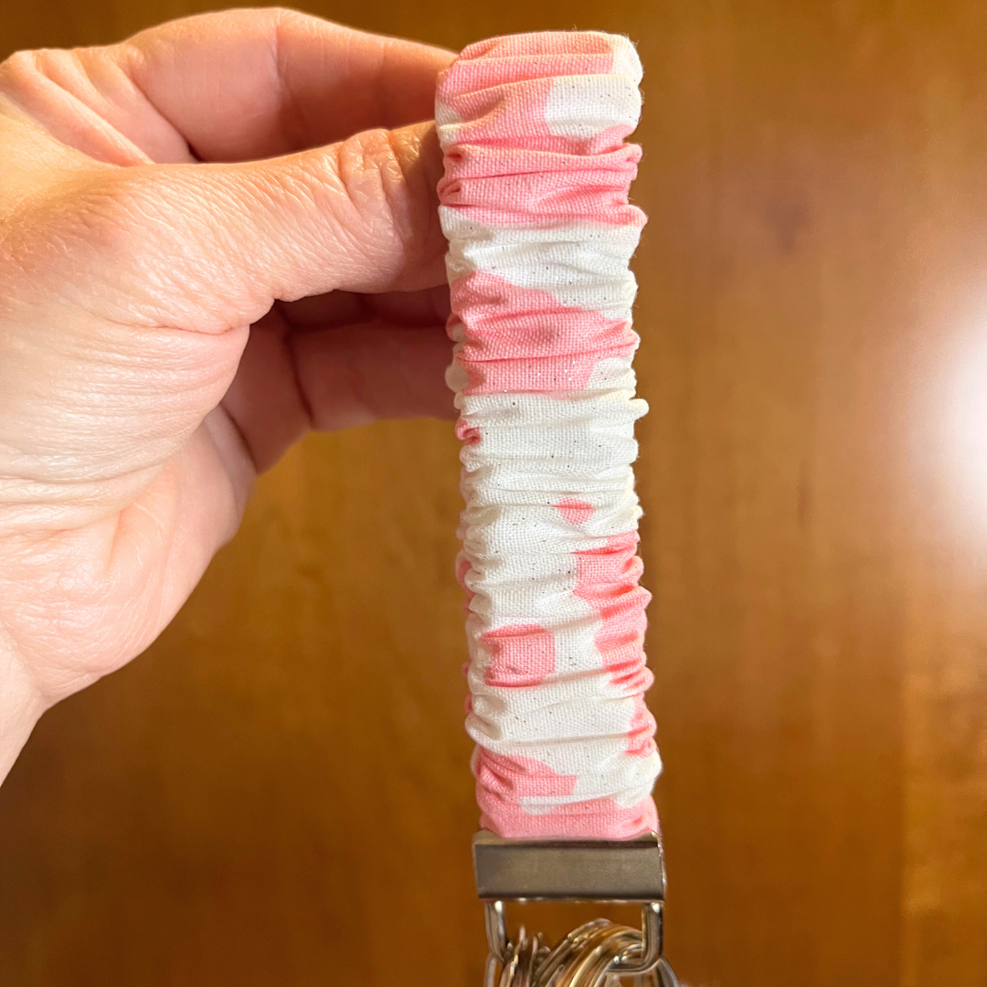Pink and White Cow Print Scrunchie Wristlet Safety Keychain