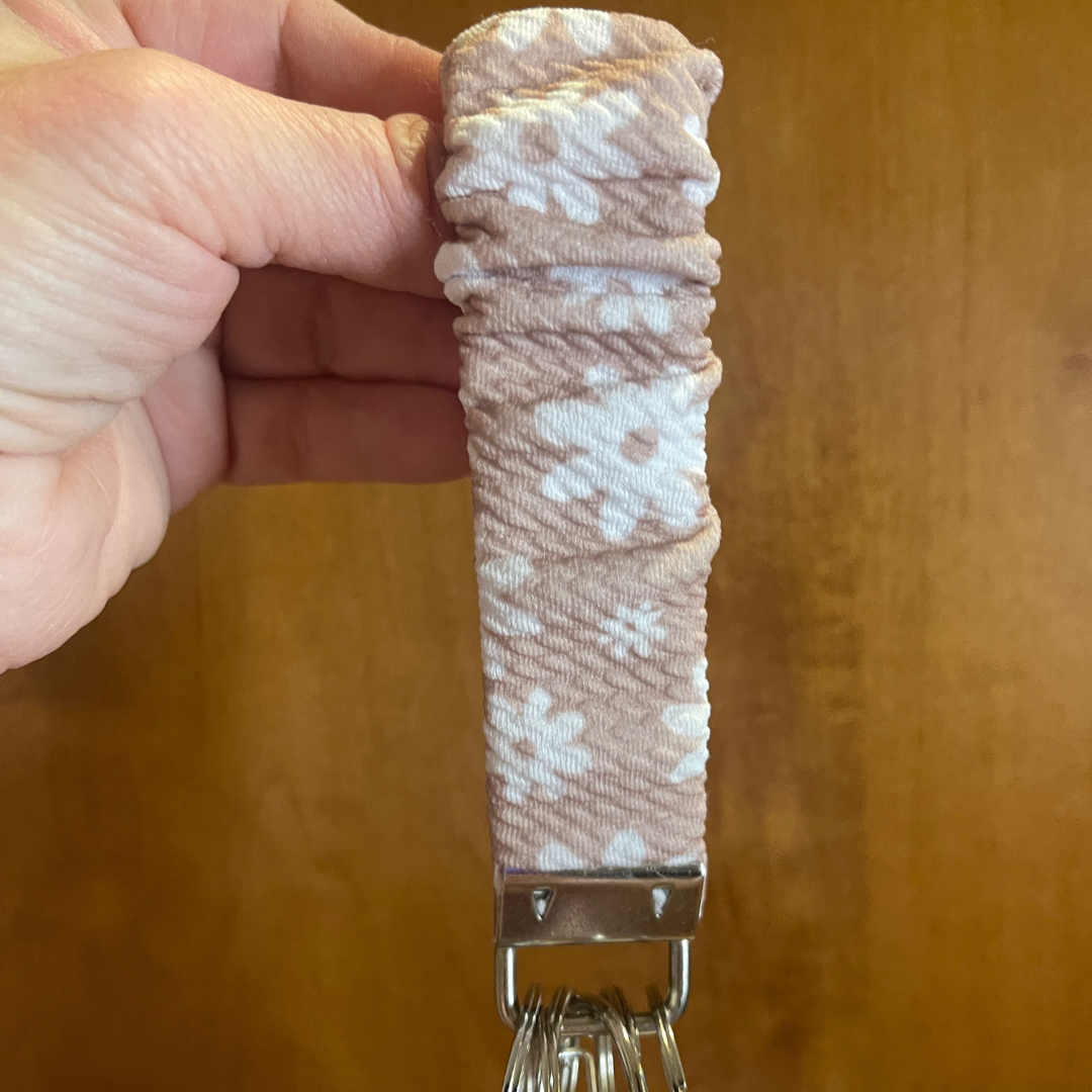 Tan Floral Scrunchie Wristlet Safety Keychain